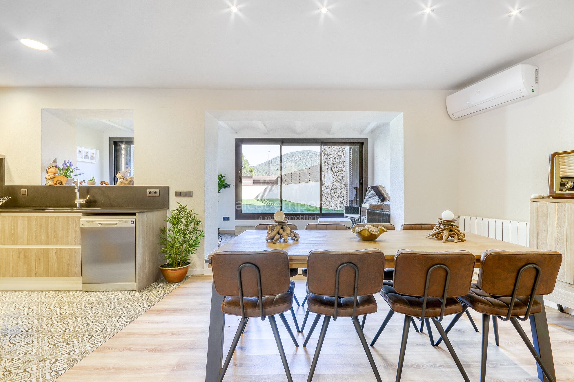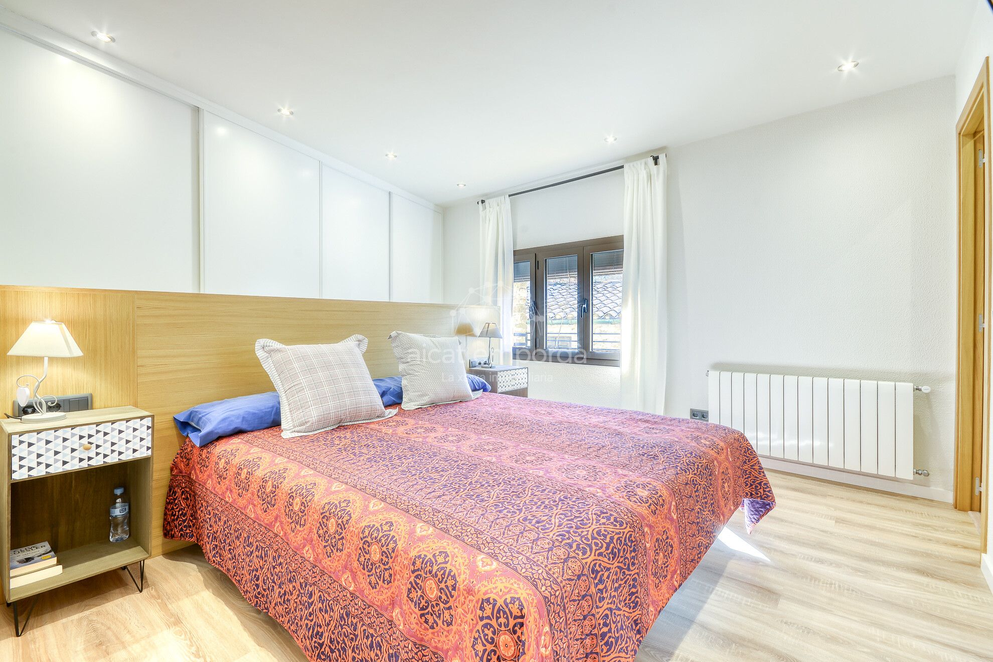 Casa con fachada de piedra, un exquisito gusto decorativo. Recibidor y sala presidido por una chimenea, un comedor smplio y cocina abierta, moderna y totalmente equipada, forman un conjunto muy espacioso y agradable. Un espacio que da la salida del amplio jardín con vistas fantásticas en la montaña. La planta baja está equipada con parqué y un equipo de aire acondicionado, amplio armario empontrado, armario de telecomunicaciones, habitación para lavadora, y un baño con plato de ducha.